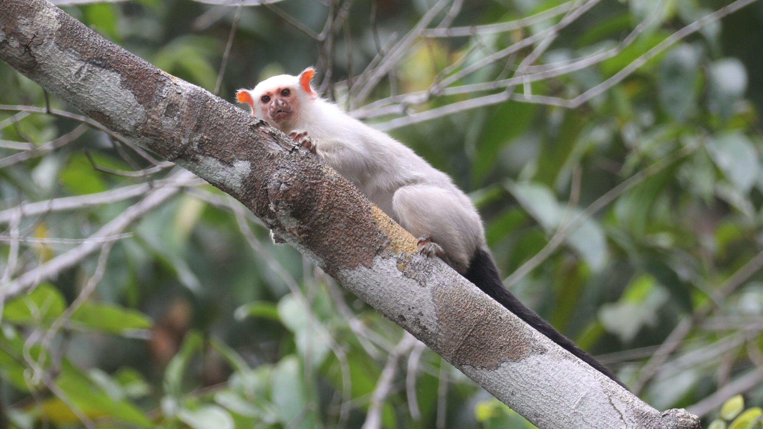 Our main target this morning will be the extremely localised Santarem (or Black-and-white Tassel-eared) Marmoset. We plan to explore an area where we have previously had good success with this species and in 2024 watched two marmosets grooming each other for over an hour.