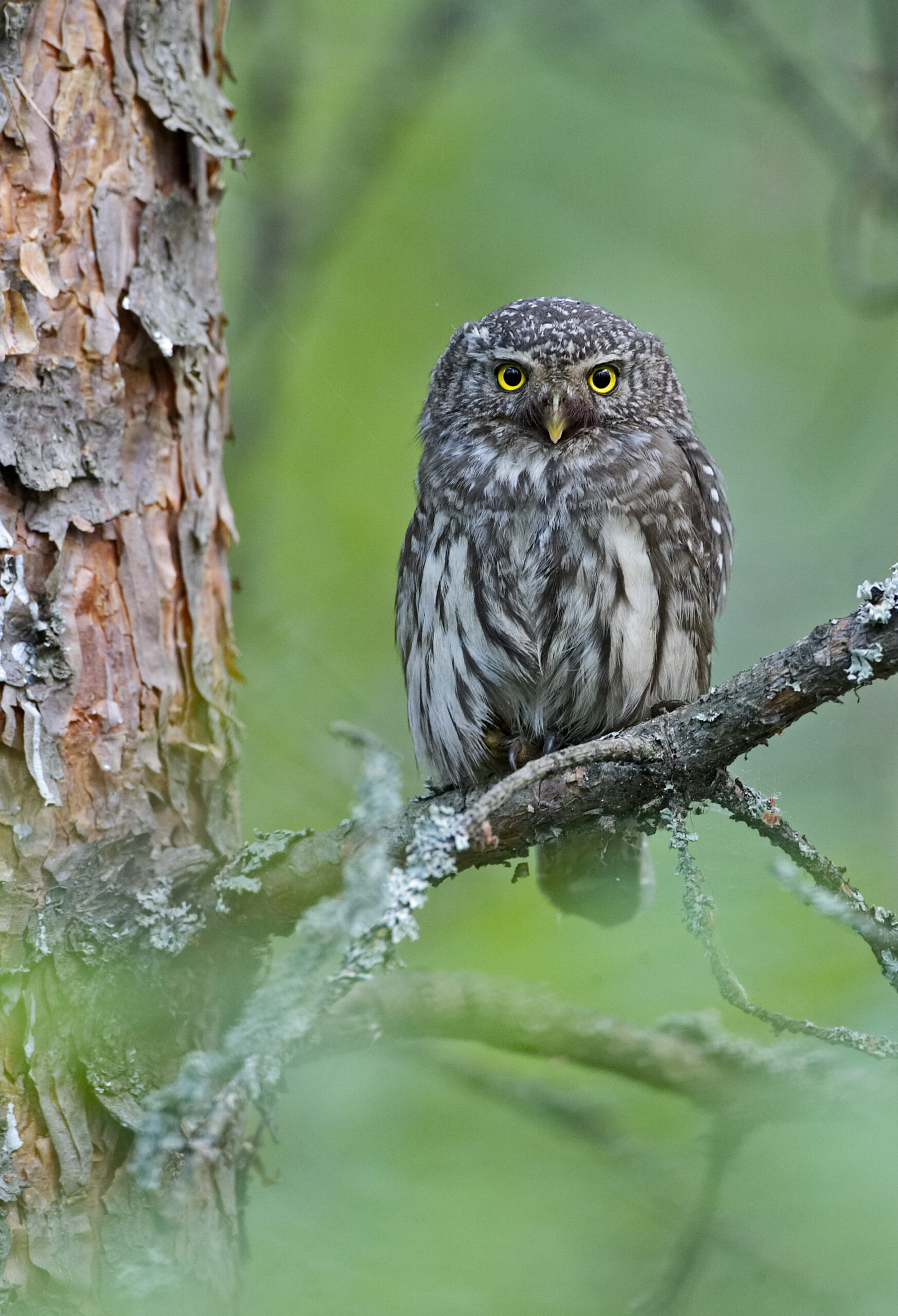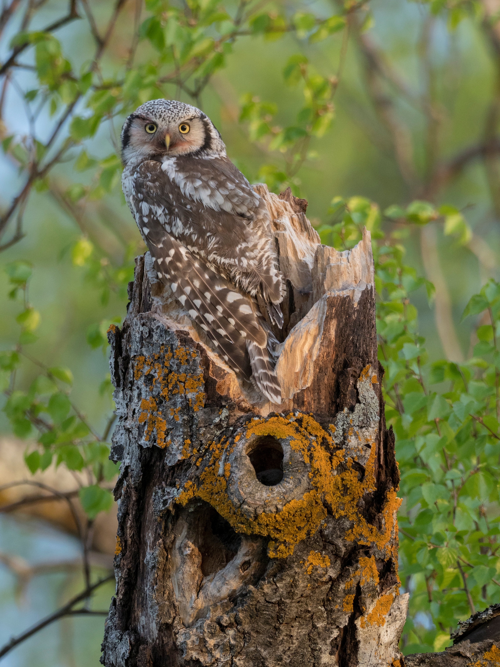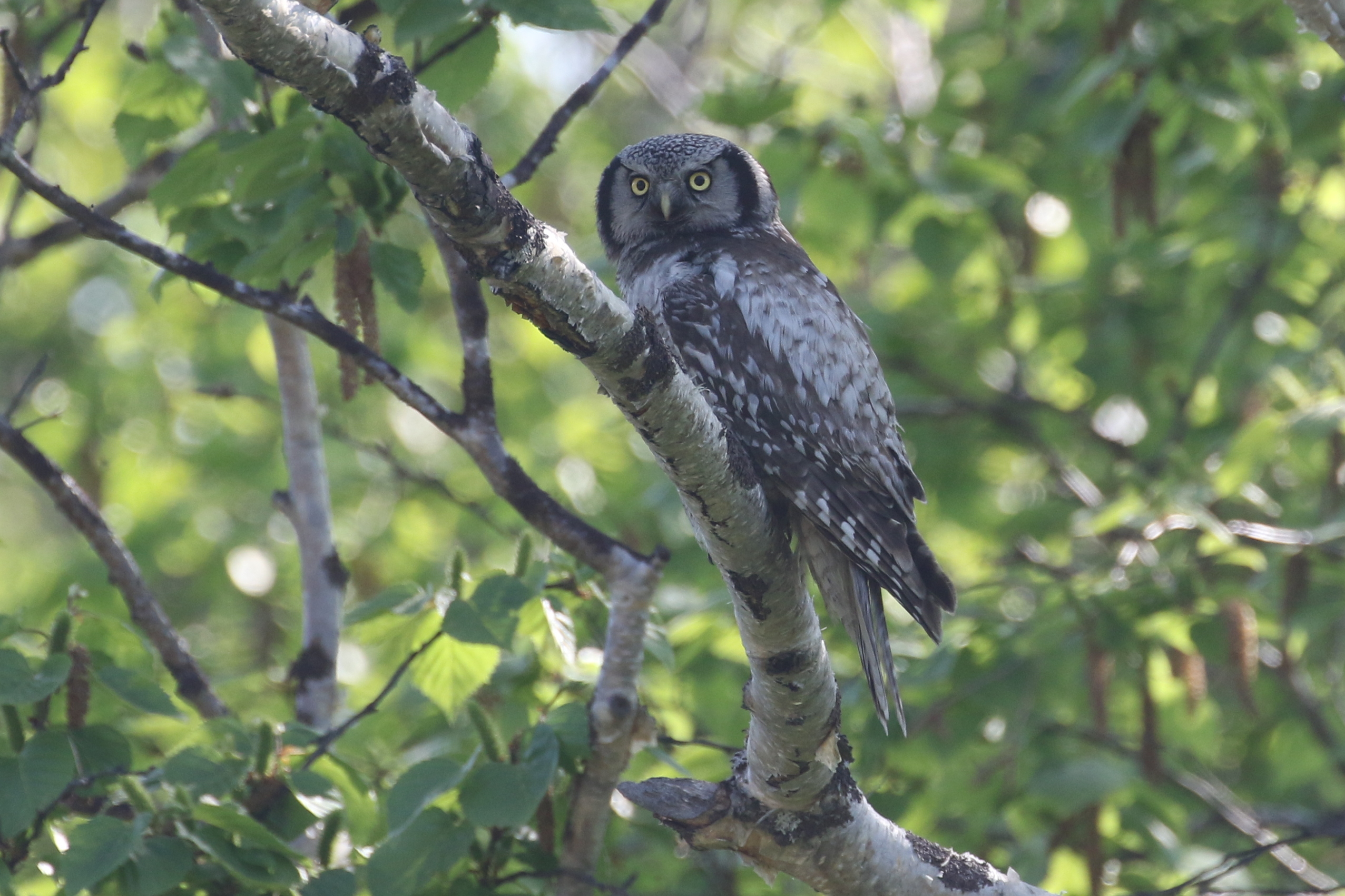 With luck, the calls of Crested Tits and other small birds may lead us to find a male perched in a nearby tree. Night Oulu