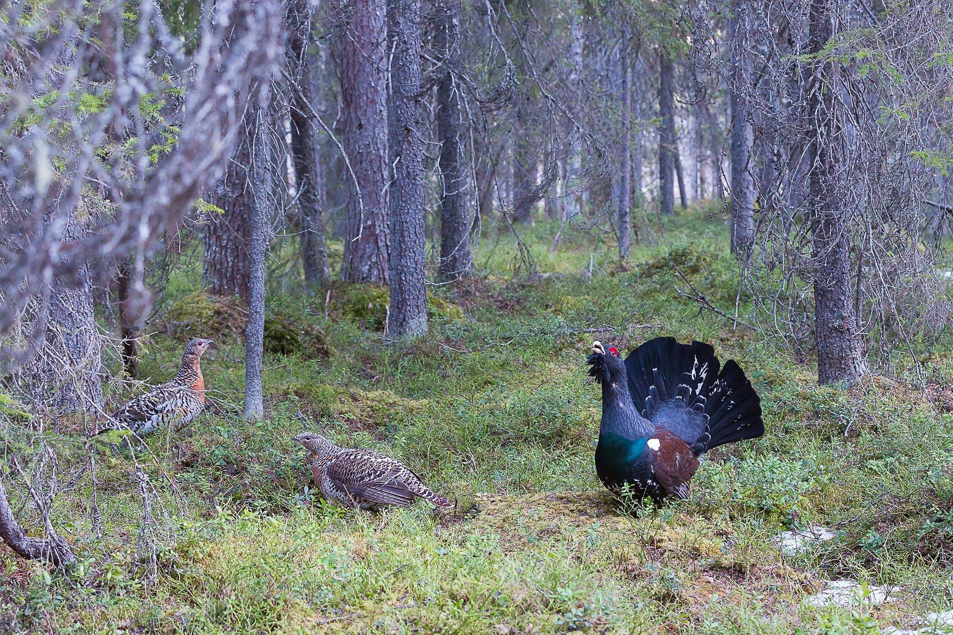 On one day at Kuusamo, we will make an early morning excursion to look for grouse, heading into the immense forests that extend around town in search of the magnificent Capercaillie as well as Black and Willow Grouse. A moderate walk in the beautiful old forests could also reward us with sightings of the elusive Hazel Grouse, along with singing Bramblings and Redwings, whilst nearby pools could hold summer plumage Black-throated Divers and Slavonian and Red-necked Grebes.