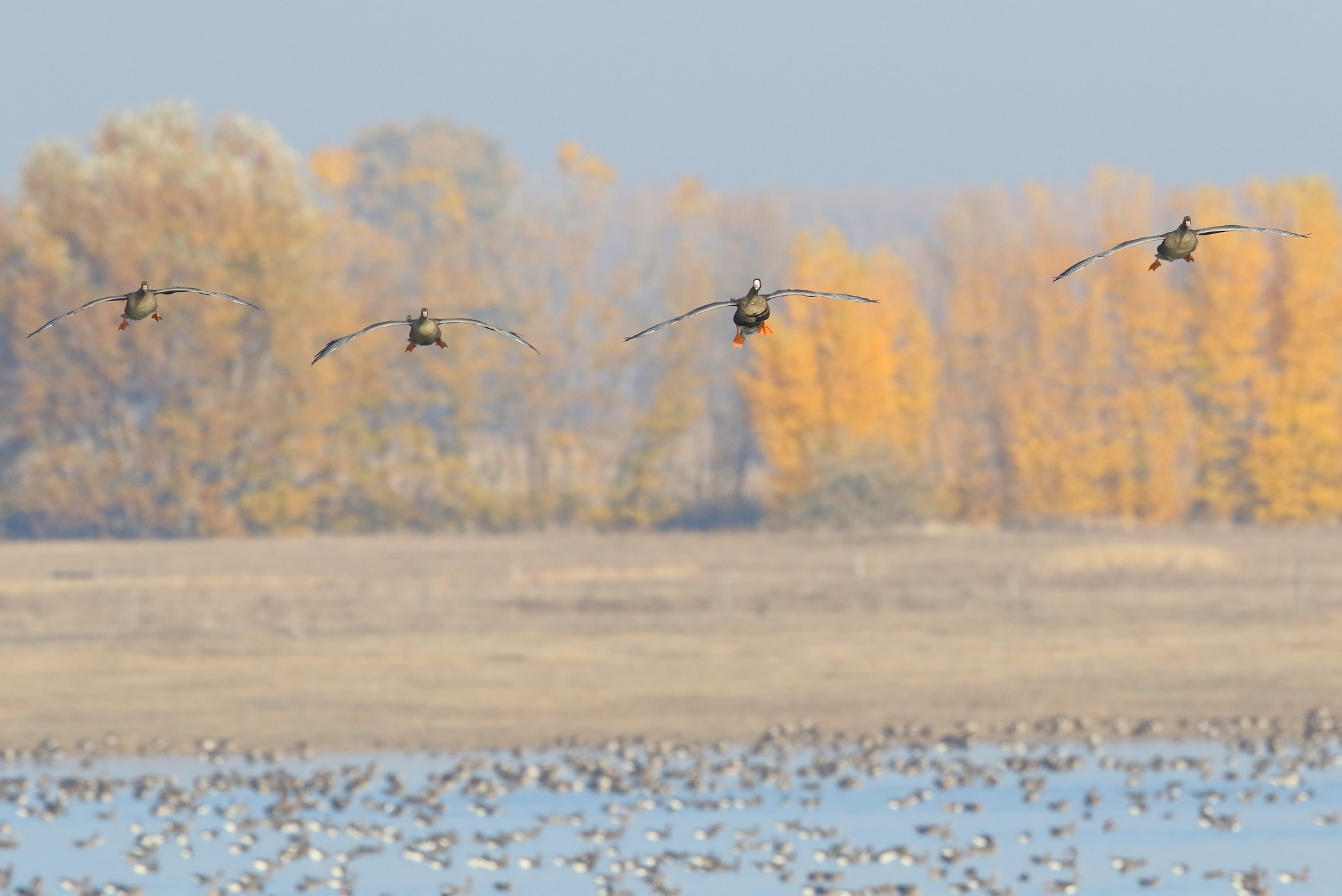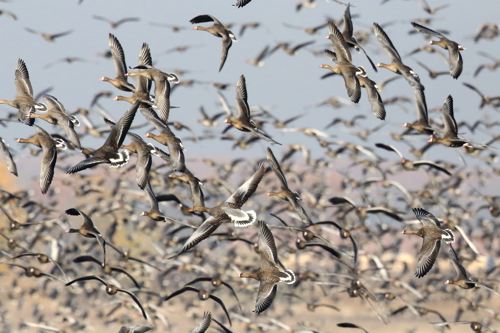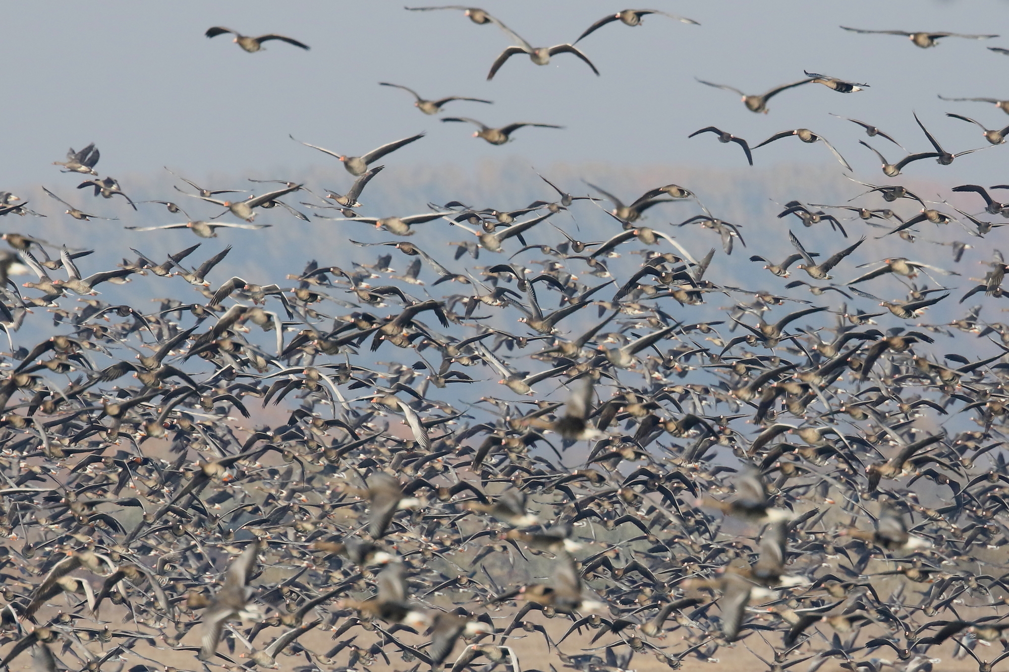 Every November, throngs of geese descend upon the Hortobágy from their breeding grounds far to the north across Scandinavia and Russia. Many thousands of Russian White-fronts winter here, bringing with them other species, including pink-billed Eastern Greylags, smart Barnacles and Taiga Bean Geese.