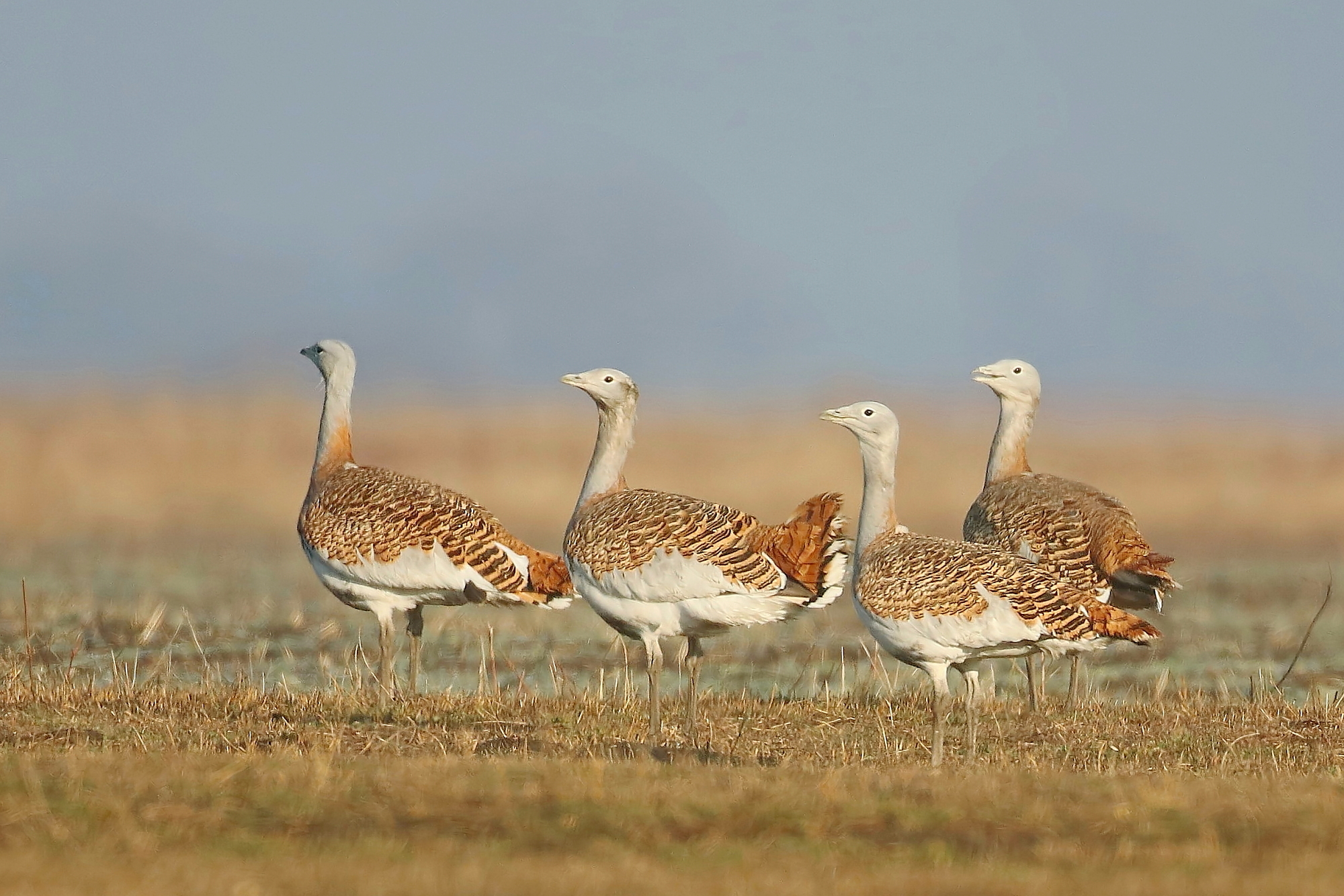 Out on the surrounding steppe, Great Bustards gather in small flocks as winter approaches. Moving sedately across the sweeping autumnal fields, these birds can often be easier to spot now than during the lush growth of spring. As we search the steppe for them, we may well come across late autumn migrants such as Great Grey Shrike and Red-throated Pipit, Lapland Bunting or even Twite.